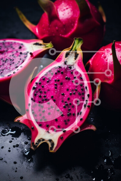 Intra Συλλεκτικό Ξύλινο Παζλ Plywood 4mm - Φρέσκα κόκκινα dragonfruits σε ένα τραπέζι με σταγόνες νερού Σε Ξύλινο Κουτί - Διαστάσεις: 10x10 cm – 25 κομμάτια