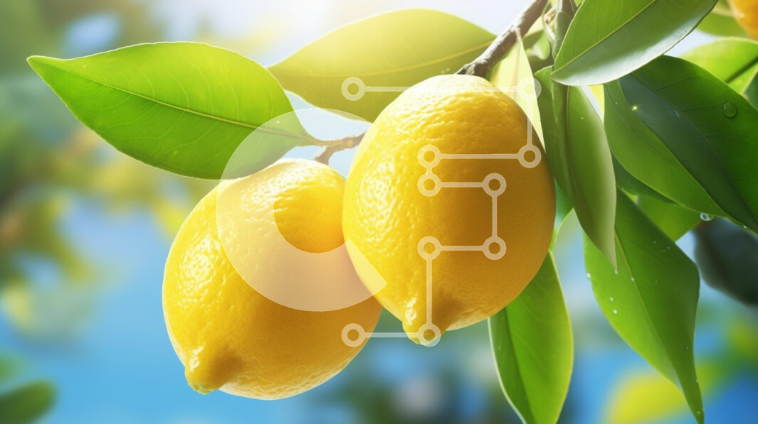 Intra Συλλεκτικό Ξύλινο Παζλ Plywood 4mm - Φρέσκα λεμόνια σε κλαδί λεμονιάς με μπλε ουρανό Σε Ξύλινο Κουτί - Διαστάσεις: 10x10 cm – 25 κομμάτια