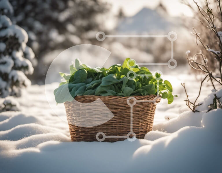 Intra Συλλεκτικό Ξύλινο Παζλ Plywood 4mm - Φρέσκα φύλλα σπανακιού στο χιόνι Σε Ξύλινο Κουτί - Διαστάσεις: 10x10 cm – 25 κομμάτια