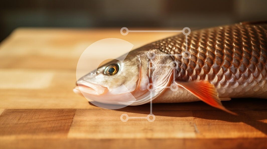 Intra Συλλεκτικό Ξύλινο Παζλ Plywood 4mm - Φρέσκα ψάρια σε μια ξύλινη σανίδα κοπής Σε Ξύλινο Κουτί - Διαστάσεις: 10x10 cm – 25 κομμάτια