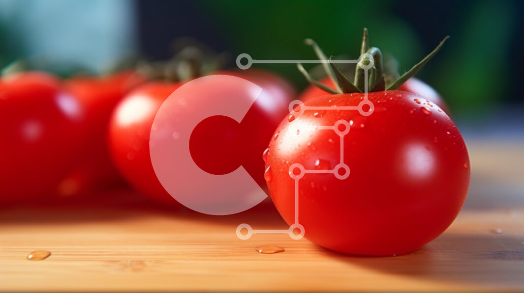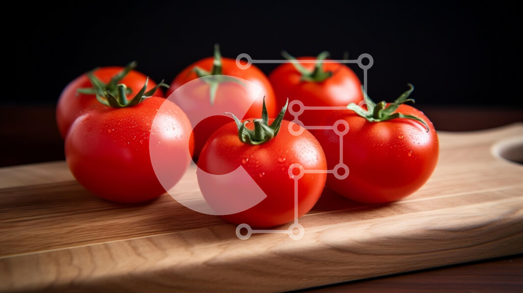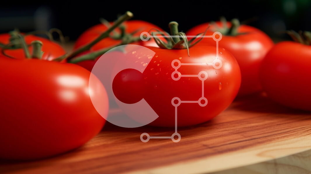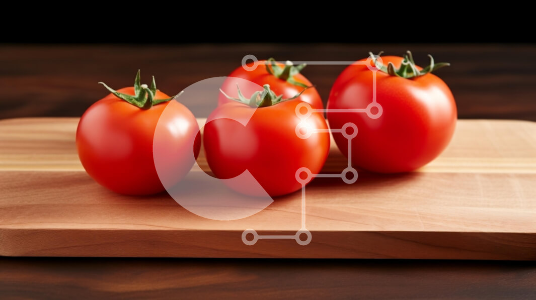 Intra Συλλεκτικό Ξύλινο Παζλ Plywood 4mm - Φρέσκες κόκκινες ντομάτες σε έναν ξύλινο πίνακα κοπής Σε Ξύλινο Κουτί - Διαστάσεις: 10x10 cm – 25 κομμάτια