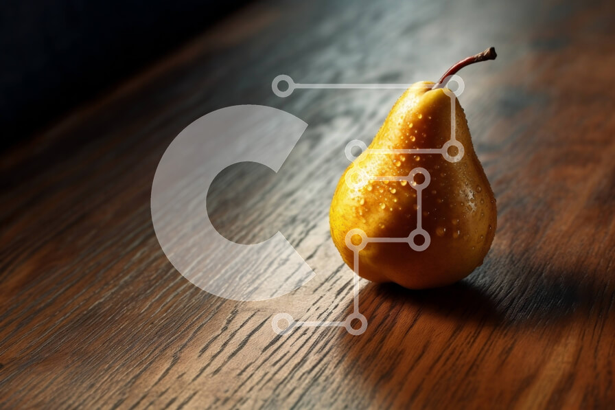 Intra Συλλεκτικό Ξύλινο Παζλ Plywood 4mm - Φρέσκο και ζουμερό κίτρινο αχλάδι σε ξύλινο τραπέζι Σε Ξύλινο Κουτί - Διαστάσεις: 10x10 cm – 25 κομμάτια
