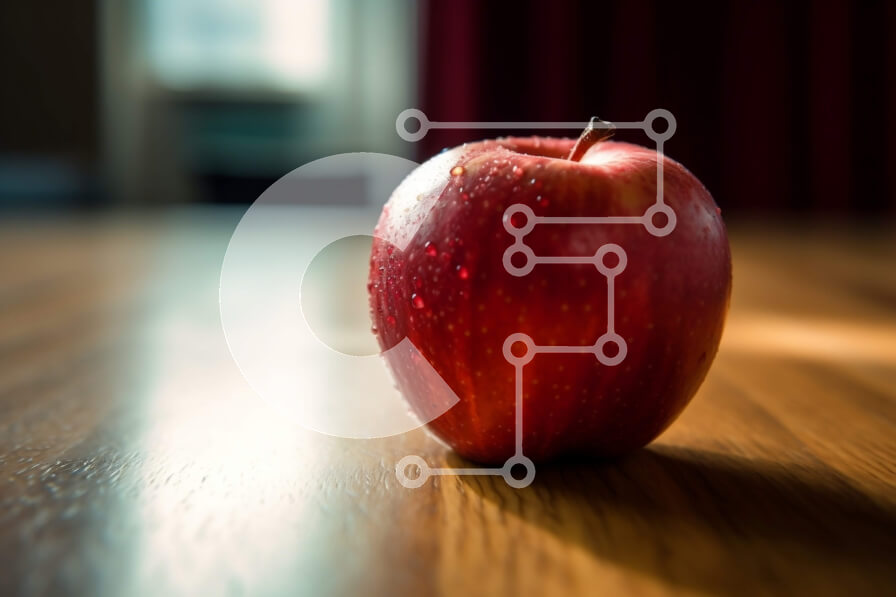 Intra Συλλεκτικό Ξύλινο Παζλ Plywood 4mm - Φρέσκο κόκκινο μήλο σε ένα ξύλινο τραπέζι με όμορφες κουρτίνες στο φόντο Σε Ξύλινο Κουτί - Διαστάσεις: 10x10 cm – 25 κομμάτια