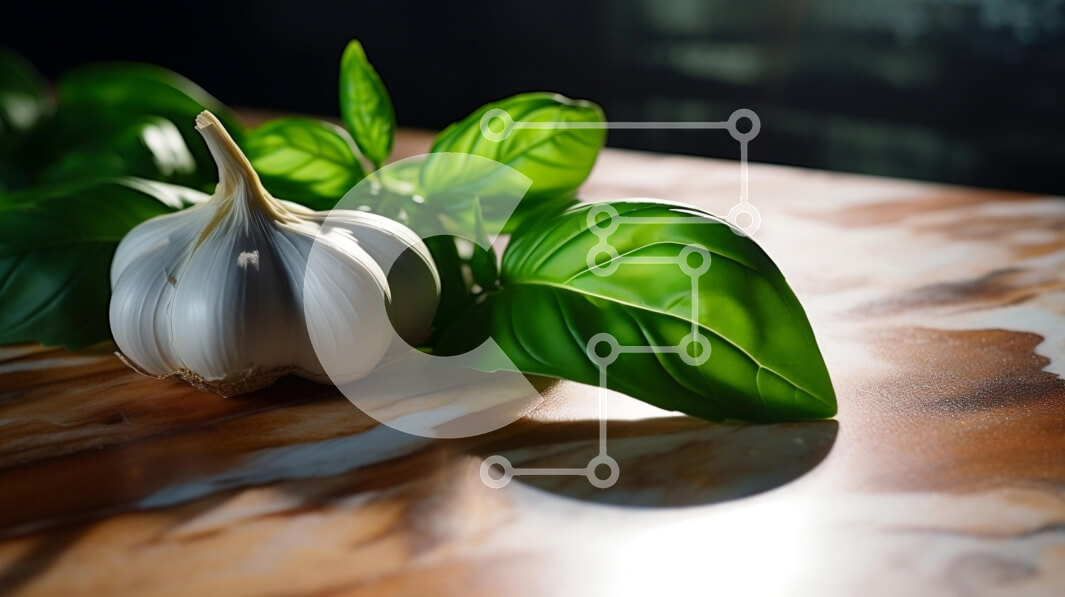 Intra Συλλεκτικό Ξύλινο Παζλ Plywood 4mm - Φρέσκο σκόρδο και πράσινα φύλλα σε μαρμάρινο τραπέζι Σε Ξύλινο Κουτί - Διαστάσεις: 10x10 cm – 25 κομμάτια