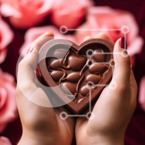 Intra Συλλεκτικό Ξύλινο Παζλ Plywood 4mm - Χέρια που κρατούν σοκολάτα σε σχήμα καρδιάς με ροζ τριαντάφυλλα Σε Ξύλινο Κουτί - Διαστάσεις Puzzle: 10x10 cm – 25 κομμάτια