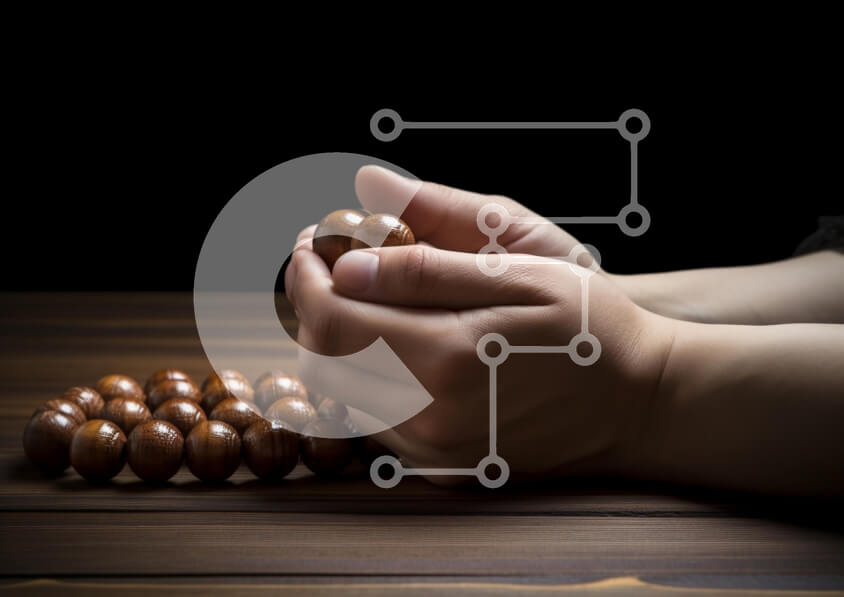 Intra Συλλεκτικό Ξύλινο Παζλ Plywood 4mm - Χέρια που κρατούν ξύλινες χάντρες με σκούρο φόντο Σε Ξύλινο Κουτί - Διαστάσεις: 10x10 cm – 25 κομμάτια