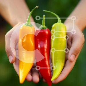 Intra Συλλεκτικό Ξύλινο Παζλ Plywood 4mm - Χέρια που κρατούν πολύχρωμες πιπεριές τσίλι σε έναν κήπο Σε Ξύλινο Κουτί - Διαστάσεις: 10x10 cm – 25 κομμάτια