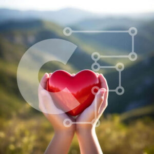 Intra Συλλεκτικό Ξύλινο Παζλ Plywood 4mm - Χέρια που κρατούν την κόκκινη καρδιά με τα βουνά στο φόντο Σε Ξύλινο Κουτί - Διαστάσεις: 10x10 cm – 25 κομμάτια