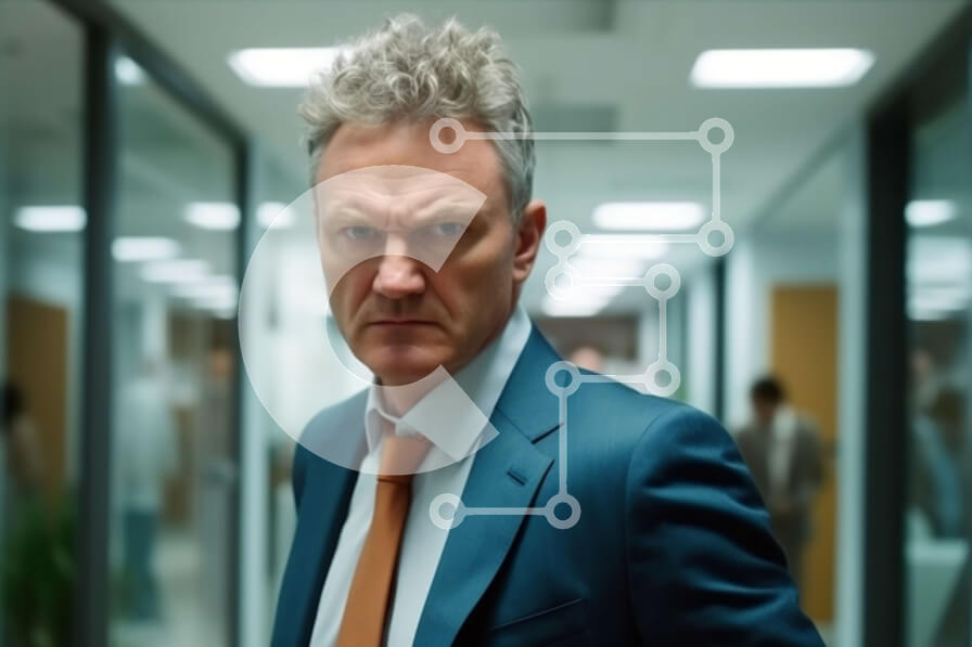 Intra Συλλεκτικό Ξύλινο Παζλ Plywood 4mm - Σοβαρός επιχειρηματίας σε ένα διάδρομο - Φωτογραφία Αρχείου Σε Ξύλινο Κουτί - Διαστάσεις Puzzle: 10x10 cm – 25 κομμάτια