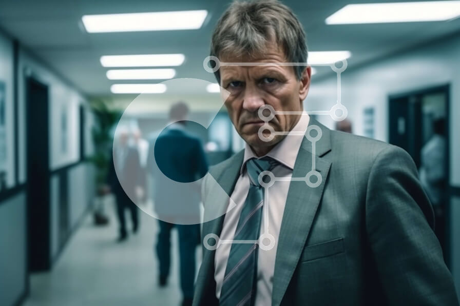 Intra Συλλεκτικό Ξύλινο Παζλ Plywood 4mm - Σοβαρός επιχειρηματίας που περιβάλλεται από συναδέλφους στο διάδρομο Σε Ξύλινο Κουτί - Διαστάσεις Puzzle: 10x10 cm – 25 κομμάτια