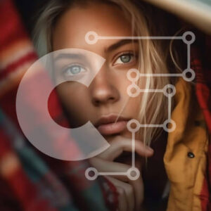 Intra Συλλεκτικό Ξύλινο Παζλ Plywood 4mm - Χαλαρή και φυσική φωτογραφία μιας ξανθιάς γυναίκας με μπλε μάτια Σε Ξύλινο Κουτί - Διαστάσεις Puzzle: 10x10 cm – 25 κομμάτια