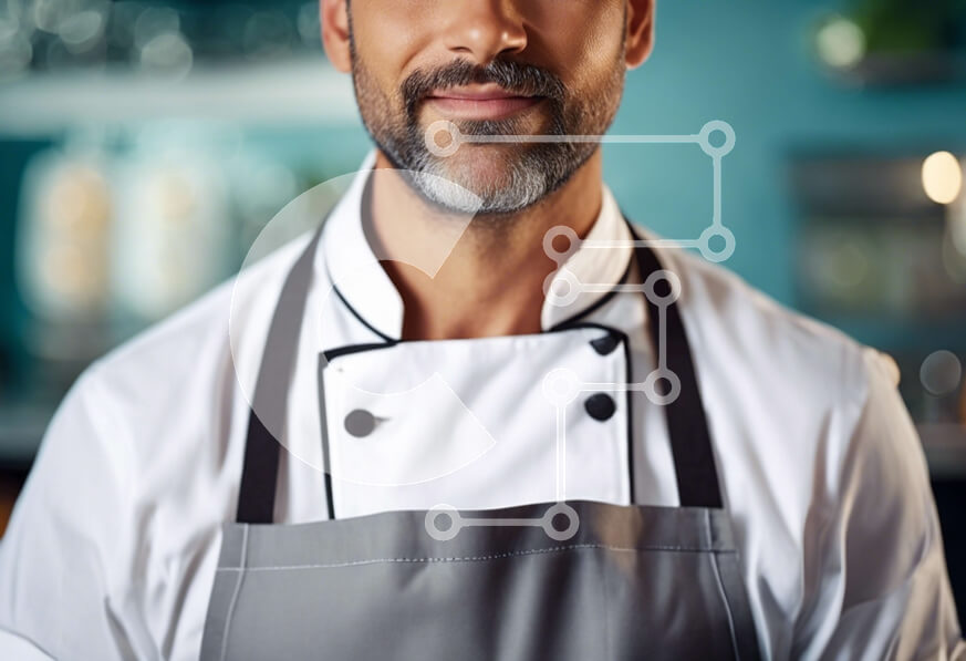 Intra Συλλεκτικό Ξύλινο Παζλ Plywood 4mm - Χαμογελαστός σεφ με γένια με κεντημένο μπουφάν και καπέλο σεφ Σε Ξύλινο Κουτί - Διαστάσεις Puzzle: 10x10 cm – 25 κομμάτια