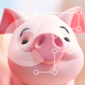 Intra Συλλεκτικό Ξύλινο Παζλ Plywood 4mm - Χαμογελώντας ροζ ειδώλιο χοίρου σε πορτοκαλί φόντο Σε Ξύλινο Κουτί - Διαστάσεις: 10x10 cm – 25 κομμάτια