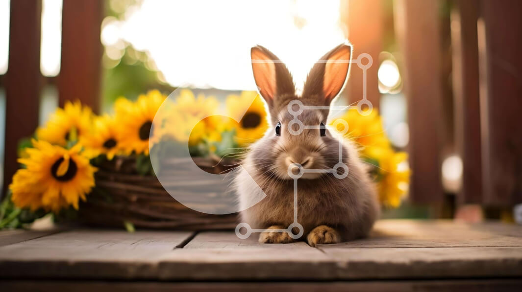 Intra Συλλεκτικό Ξύλινο Παζλ Plywood 4mm - Χαλαρό καφέ λαγουδάκι σε ξύλινο κατάστρωμα με ηλιοτρόπια Σε Ξύλινο Κουτί - Διαστάσεις: 10x10 cm – 25 κομμάτια