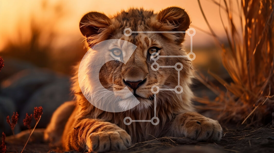 Intra Συλλεκτικό Ξύλινο Παζλ Plywood 4mm - Χαλαρό λιοντάρι σε εναέρια θέα Σε Ξύλινο Κουτί - Διαστάσεις: 10x10 cm – 25 κομμάτια