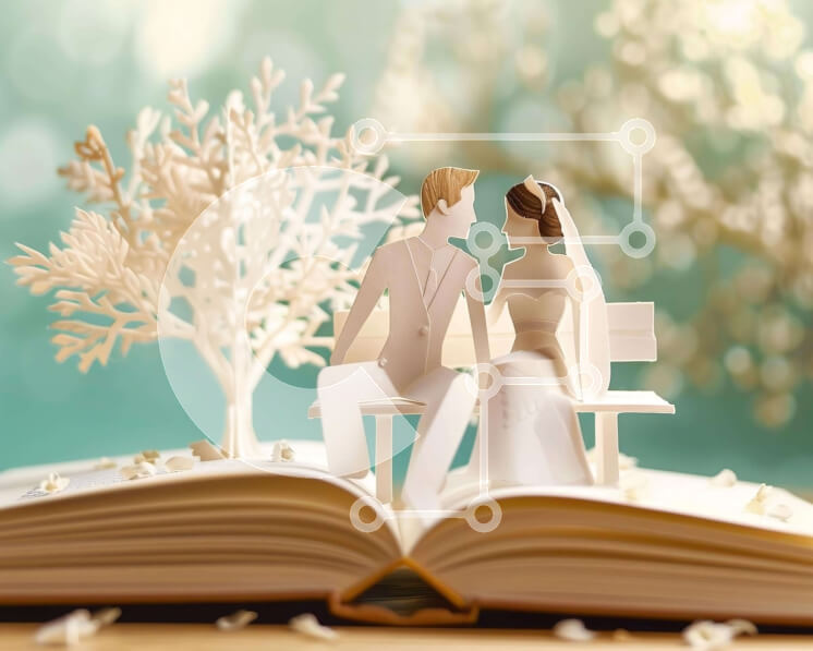 Intra Συλλεκτικό Ξύλινο Παζλ Plywood 4mm - Χαρτί κομμένα νεόνυμφοι που γιορτάζουν την αγάπη και τη συντροφικότητα Σε Ξύλινο Κουτί - Διαστάσεις Puzzle: 10x10 cm – 25 κομμάτια