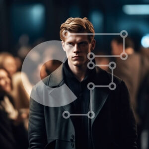 Intra Συλλεκτικό Ξύλινο Παζλ Plywood 4mm - Σοβαρός άνδρας που στέκεται μπροστά σε ένα πλήθος σε αμυδρά φωτισμένο δωμάτιο Σε Ξύλινο Κουτί - Διαστάσεις Puzzle: 10x10 cm – 25 κομμάτια