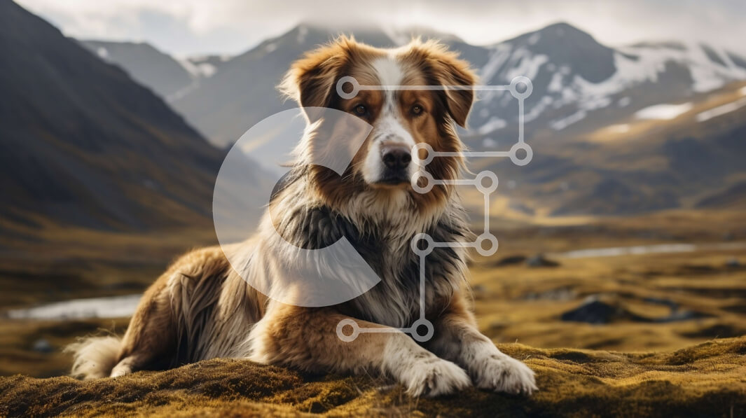 Intra Συλλεκτικό Ξύλινο Παζλ Plywood 4mm - Σκύλος που κάθεται σε βρυώδη βράχο σε ορεινό τοπίο με χιονισμένες κορυφές Σε Ξύλινο Κουτί - Διαστάσεις: 10x10 cm – 25 κομμάτια