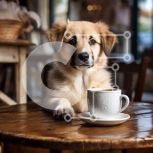 Intra Συλλεκτικό Ξύλινο Παζλ Plywood 4mm - Σκύλος που κάθεται στο τραπέζι με τον καφέ στο καφέ Σε Ξύλινο Κουτί - Διαστάσεις: 10x10 cm – 25 κομμάτια