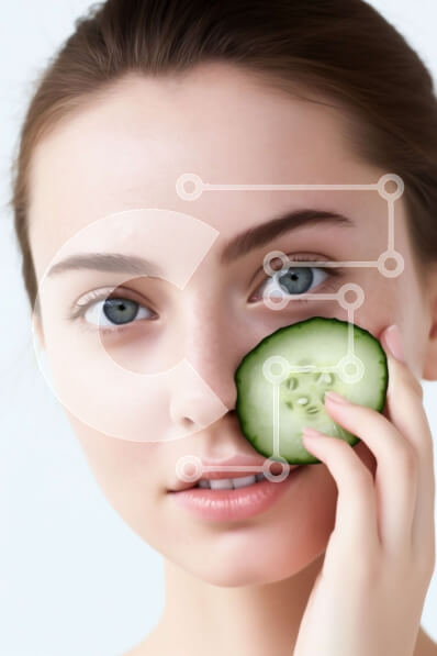 Intra Συλλεκτικό Ξύλινο Παζλ Plywood 4mm - Χαλαρώστε και ανανεώστε: Γυναίκα που κρατά μια φέτα αγγουριού στο μάτι της Σε Ξύλινο Κουτί - Διαστάσεις Puzzle: 10x10 cm – 25 κομμάτια