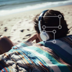 Intra Συλλεκτικό Ξύλινο Παζλ Plywood 4mm - Χαλαρώστε στην παραλία με ακουστικά και γυαλιά ηλίου Σε Ξύλινο Κουτί - Διαστάσεις Puzzle: 10x10 cm – 25 κομμάτια