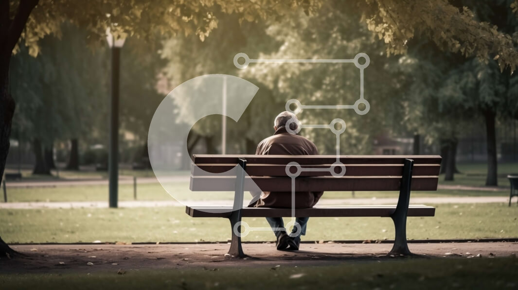 Intra Συλλεκτικό Ξύλινο Παζλ Plywood 4mm - Χαλαρωτική στιγμή στο πάρκο: Άτομο που κάθεται σε ένα παγκάκι που περιβάλλεται από δέντρα και καθαρό μπλε ουρανό Σε Ξύλινο Κουτί - Διαστάσεις Puzzle: 10x10 cm – 25 κομμάτια