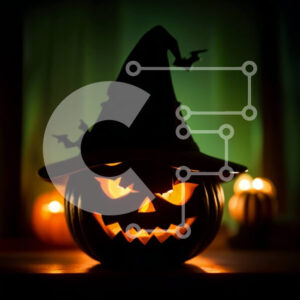 Intra Συλλεκτικό Ξύλινο Παζλ Plywood 4mm - Τρομακτικό Halloween Jack-o'-lantern Wizard Hat Pumpkin Σε Ξύλινο Κουτί - Διαστάσεις Puzzle: 10x10 cm – 25 κομμάτια