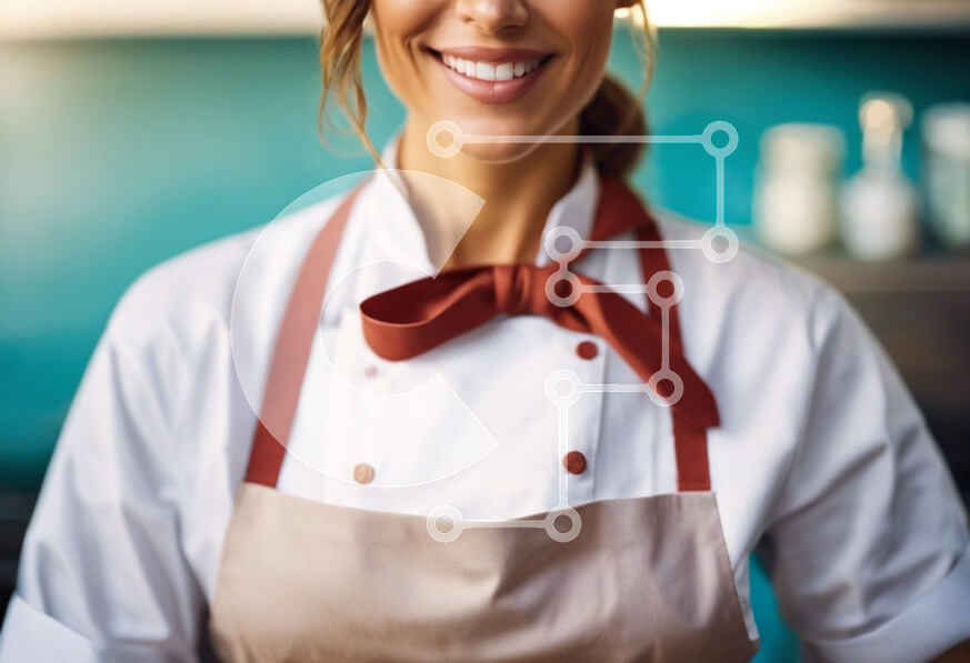 Intra Συλλεκτικό Ξύλινο Παζλ Plywood 4mm - Χαμογελαστή γυναίκα σεφ με κεντημένο καπέλο και σακάκι Σε Ξύλινο Κουτί - Διαστάσεις Puzzle: 10x10 cm – 25 κομμάτια