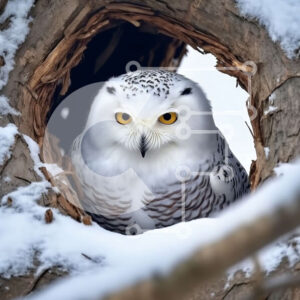 Intra Συλλεκτικό Ξύλινο Παζλ Plywood 4mm - Χιονώδης κουκουβάγια σκαρφαλωμένη σε ένα κοίλο δέντρου ヨ Φωτογραφία Αρχείου Σε Ξύλινο Κουτί - Διαστάσεις: 10x10 cm – 25 κομμάτια