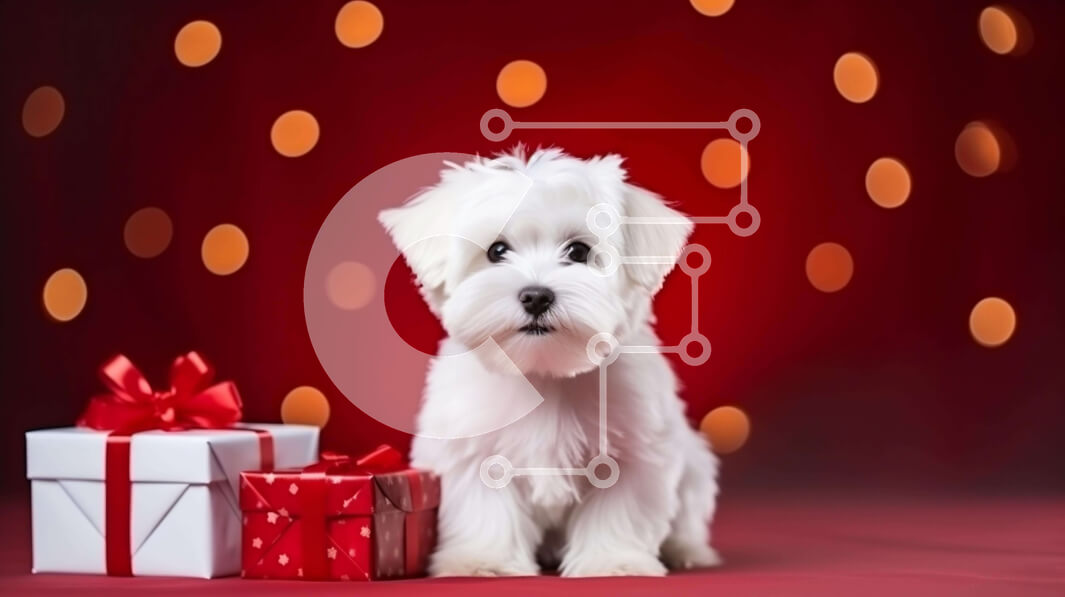 Intra Συλλεκτικό Ξύλινο Παζλ Plywood 4mm - Χαμογελαστός σκύλος με κουτιά δώρων - Ιδανικός για την περίοδο των διακοπών Σε Ξύλινο Κουτί - Διαστάσεις: 10x10 cm – 25 κομμάτια