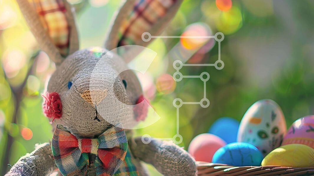Intra Συλλεκτικό Ξύλινο Παζλ Plywood 4mm - Χαρούμενη πασχαλινή γιορτή με γεμιστό κουνελάκι και πολύχρωμα αυγά Σε Ξύλινο Κουτί - Διαστάσεις Puzzle: 10x10 cm – 25 κομμάτια