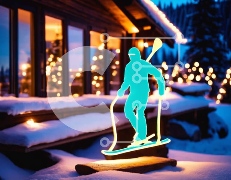 Intra Συλλεκτικό Ξύλινο Παζλ Plywood 4mm - Φιγούρα με νέον σε σκι στη Χώρα των Θαυμάτων του Χειμώνα Σε Ξύλινο Κουτί - Διαστάσεις Puzzle: 10x10 cm – 25 κομμάτια