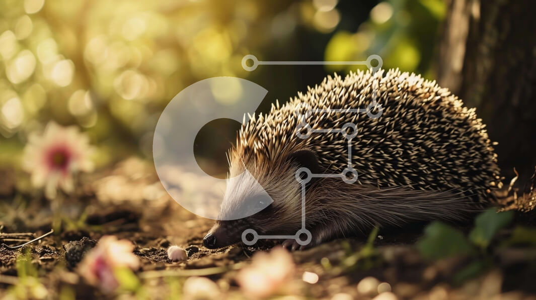 Intra Συλλεκτικό Ξύλινο Παζλ Plywood 4mm - Χαριτωμένος σκαντζόχοιρος που κάθεται μπροστά από τα λουλούδια Σε Ξύλινο Κουτί - Διαστάσεις: 10x10 cm – 25 κομμάτια
