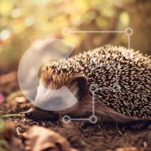 Intra Συλλεκτικό Ξύλινο Παζλ Plywood 4mm - Χαριτωμένος σκαντζόχοιρος που κάθεται σε φύλλα και βράχους στο δάσος Σε Ξύλινο Κουτί - Διαστάσεις: 10x10 cm – 25 κομμάτια