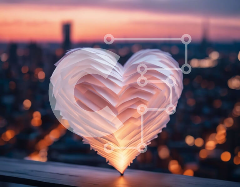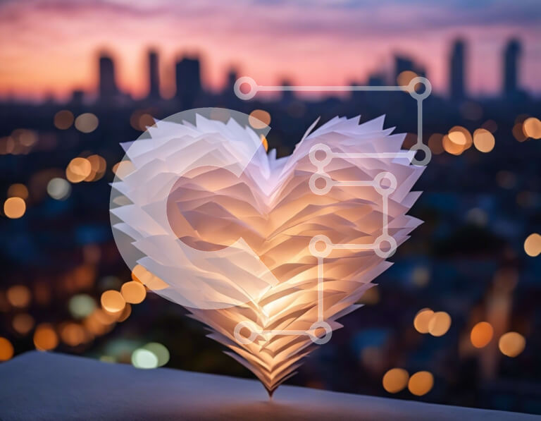 Intra Συλλεκτικό Ξύλινο Παζλ Plywood 4mm - Χάρτινο φανάρι σε σχήμα καρδιάς στο σούρουπο με τον ορίζοντα της πόλης Σε Ξύλινο Κουτί - Διαστάσεις Puzzle: 10x10 cm – 25 κομμάτια