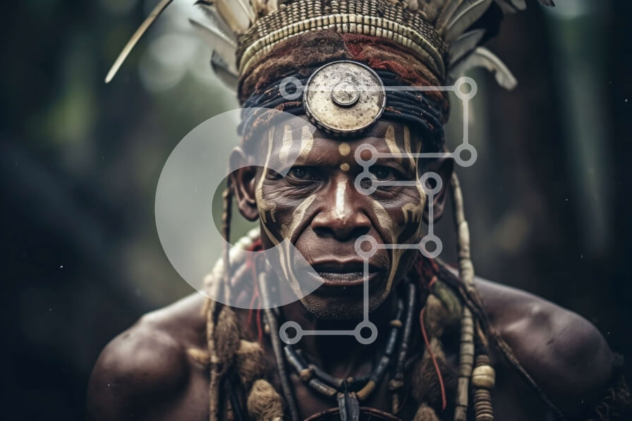 Intra Συλλεκτικό Ξύλινο Παζλ Plywood 4mm - Σοβαρός ιθαγενής Αμερικανός με παραδοσιακή μπογιά προσώπου και κόμμωση Σε Ξύλινο Κουτί - Διαστάσεις Puzzle: 10x10 cm – 25 κομμάτια