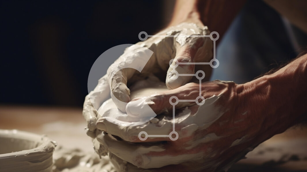 Intra Συλλεκτικό Ξύλινο Παζλ Plywood 4mm - Χέρια που εργάζονται με πηλό στην τέχνη κεραμικής Σε Ξύλινο Κουτί - Διαστάσεις Puzzle: 10x10 cm – 25 κομμάτια