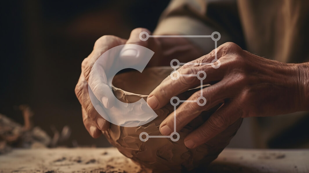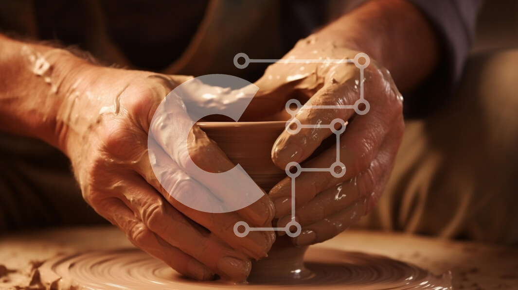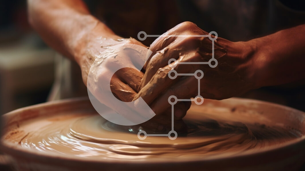 Intra Συλλεκτικό Ξύλινο Παζλ Plywood 4mm - Χέρια που διαμορφώνουν ένα πήλινο μπολ στον τροχό του Πότερ Σε Ξύλινο Κουτί - Διαστάσεις Puzzle: 10x10 cm – 25 κομμάτια