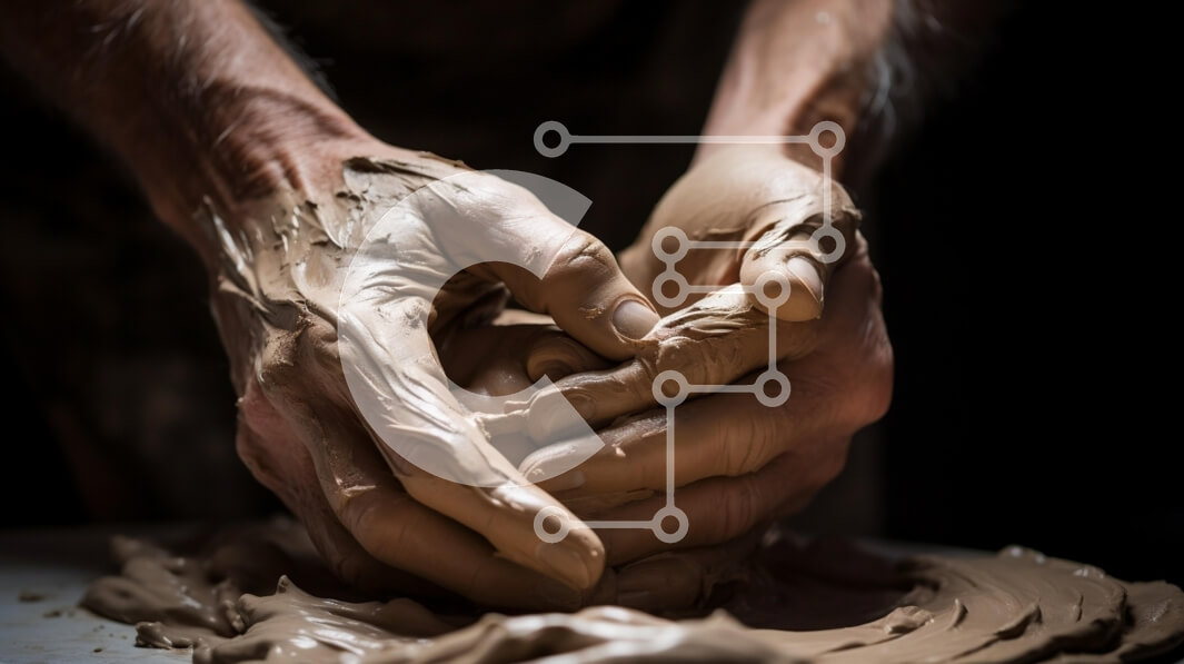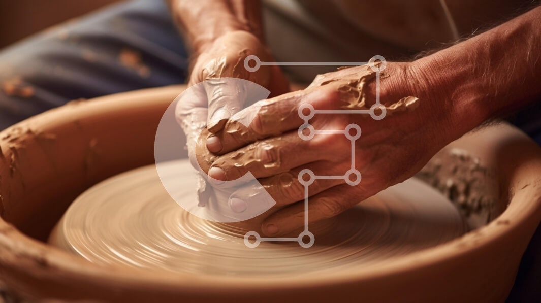 Intra Συλλεκτικό Ξύλινο Παζλ Plywood 4mm - Χέρια που σχηματίζουν πηλό σε ρόδα κεραμικής Σε Ξύλινο Κουτί - Διαστάσεις Puzzle: 10x10 cm – 25 κομμάτια