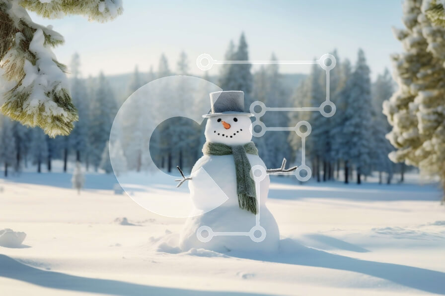 Intra Συλλεκτικό Ξύλινο Παζλ Plywood 4mm - Χιονάνθρωπος σε ένα χιονισμένο χωράφι με μπλε ουρανό και σύννεφα Σε Ξύλινο Κουτί - Διαστάσεις Puzzle: 10x10 cm – 25 κομμάτια