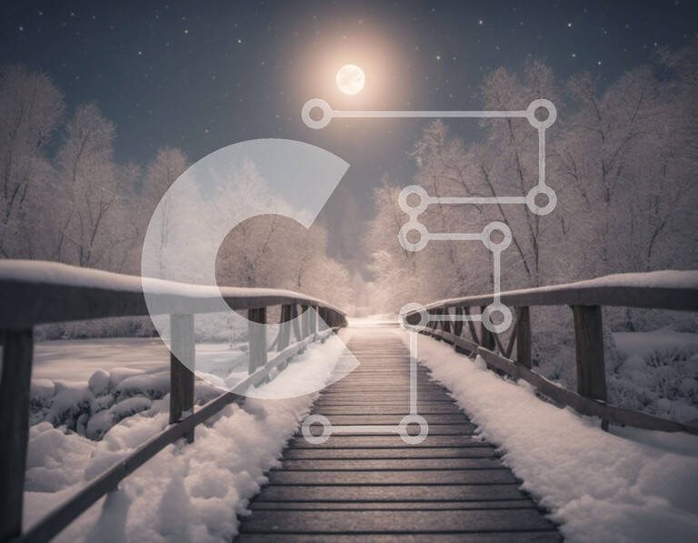Intra Συλλεκτικό Ξύλινο Παζλ Plywood 4mm - Χιονισμένη ξύλινη γέφυρα στο δάσος τη νύχτα με πανσέληνο Σε Ξύλινο Κουτί - Διαστάσεις: 10x10 cm – 25 κομμάτια
