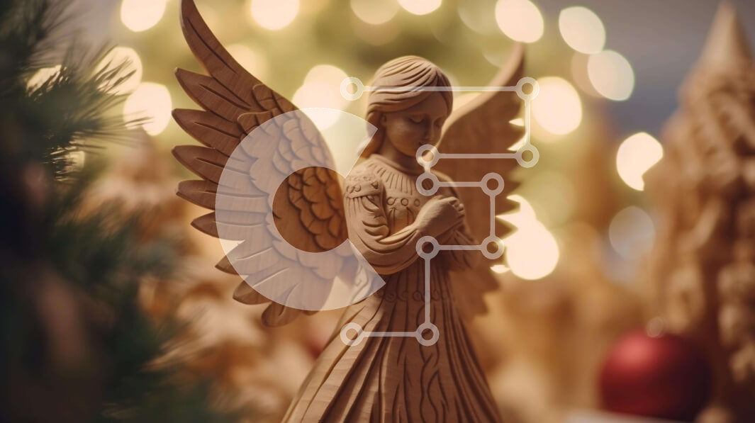 Intra Συλλεκτικό Ξύλινο Παζλ Plywood 4mm - Χριστουγεννιάτικο άγαλμα αγγέλου με δέντρα και στολίδια Σε Ξύλινο Κουτί - Διαστάσεις: 10x10 cm – 25 κομμάτια