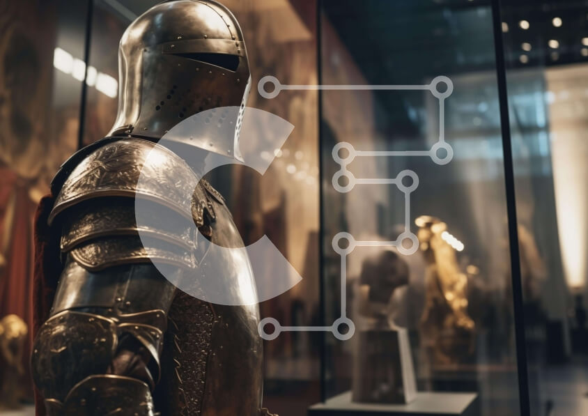 Intra Συλλεκτικό Ξύλινο Παζλ Plywood 4mm - Χρυσόχρωμη πανοπλία που εκτίθεται σε Μουσείο Τέχνης Σε Ξύλινο Κουτί - Διαστάσεις Puzzle: 10x10 cm – 25 κομμάτια