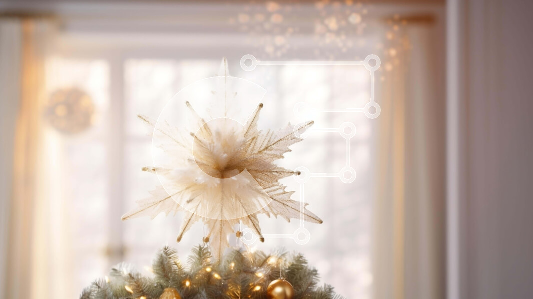 Intra Συλλεκτικό Ξύλινο Παζλ Plywood 4mm - Χριστουγεννιάτικο δέντρο με κόκκινα και χρυσά στολίδια και φώτα Bokeh Σε Ξύλινο Κουτί - Διαστάσεις: 10x10 cm – 25 κομμάτια