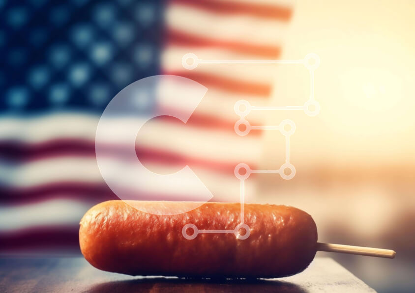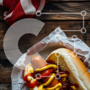 Intra Συλλεκτικό Ξύλινο Παζλ Plywood 4mm - Χοτ ντογκ τυλιγμένο με μπέικον σε ραβδί αμερικανικής σημαίας για τον εορτασμό της 4ης Ιουλίου Σε Ξύλινο Κουτί - Διαστάσεις: 10x10 cm – 25 κομμάτια