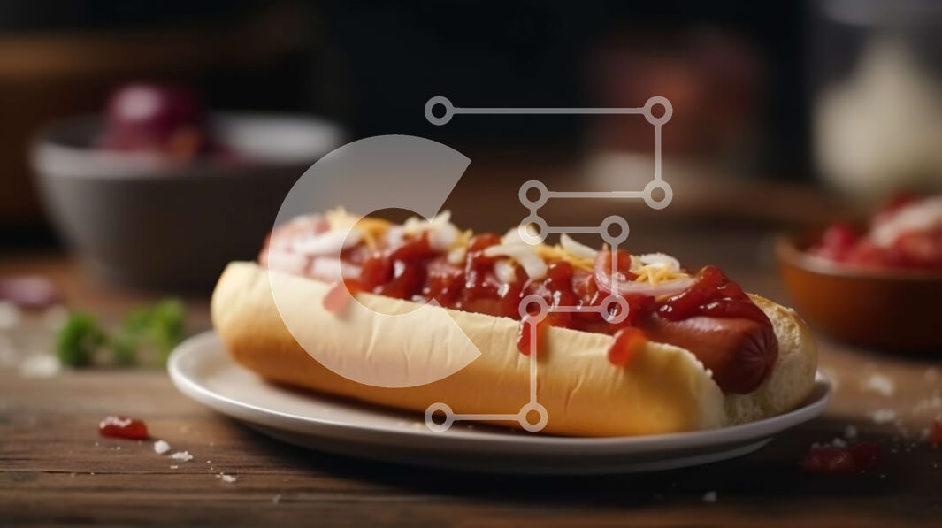 Intra Συλλεκτικό Ξύλινο Παζλ Plywood 4mm - Χοτ-ντογκ με κέτσαπ και κρεμμύδια και τηγανιτές πατάτες - Φωτογραφία Αρχείου Σε Ξύλινο Κουτί - Διαστάσεις: 10x10 cm – 25 κομμάτια