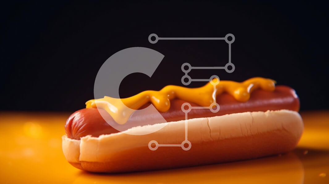 Intra Συλλεκτικό Ξύλινο Παζλ Plywood 4mm - Χοτ-ντογκ με μουστάρδα και τυρί σε πορτοκαλί φόντο Σε Ξύλινο Κουτί - Διαστάσεις: 10x10 cm – 25 κομμάτια