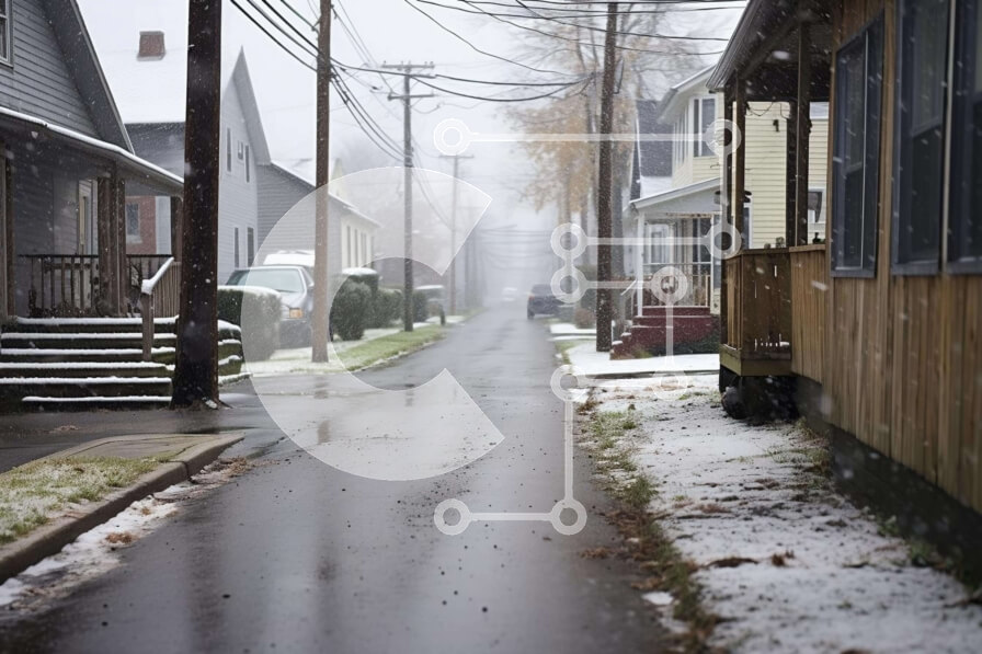 Intra Συλλεκτικό Ξύλινο Παζλ Plywood 4mm - Χιονισμένος δρόμος της πόλης με παρκαρισμένα αυτοκίνητα το χειμώνα Σε Ξύλινο Κουτί - Διαστάσεις Puzzle: 10x10 cm – 25 κομμάτια
