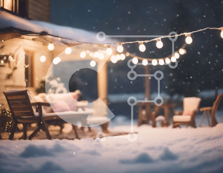 Intra Συλλεκτικό Ξύλινο Παζλ Plywood 4mm - Χιονισμένος εξωτερικός χώρος με έπιπλα και φώτα Σε Ξύλινο Κουτί - Διαστάσεις Puzzle: 10x10 cm – 25 κομμάτια