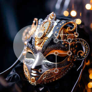 Intra Συλλεκτικό Ξύλινο Παζλ Plywood 4mm - Χρυσή και μαύρη βενετσιάνικη μάσκα με πολύχρωμα φώτα Σε Ξύλινο Κουτί - Διαστάσεις Puzzle: 10x10 cm – 25 κομμάτια